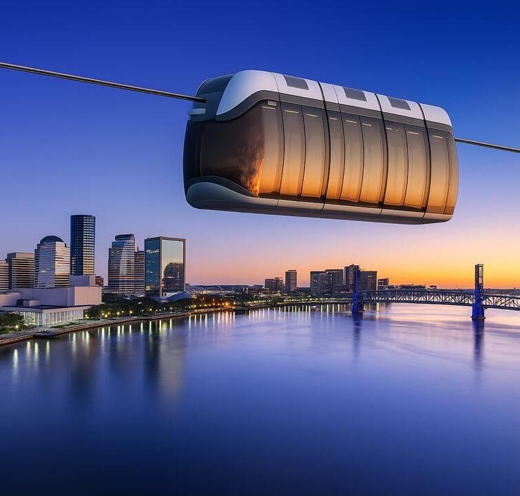 Suspended 60 feet or higher above the ground, the tracks rise above highways, urban sprawl, and environmental hazards. This elevation eliminates the risk of collisions with road traffic, wildlife, or debris, ensuring uninterrupted travel. With unsupported sections up to 1.9-3.1 miles, it spans waters, gorges, or cities without massive ground works, using anchoring structures up to 6.2 miles apart for horizontal loads and towers up to 1.2 miles for vertical, minimizing land disruption and enabling elegant overhead integration.